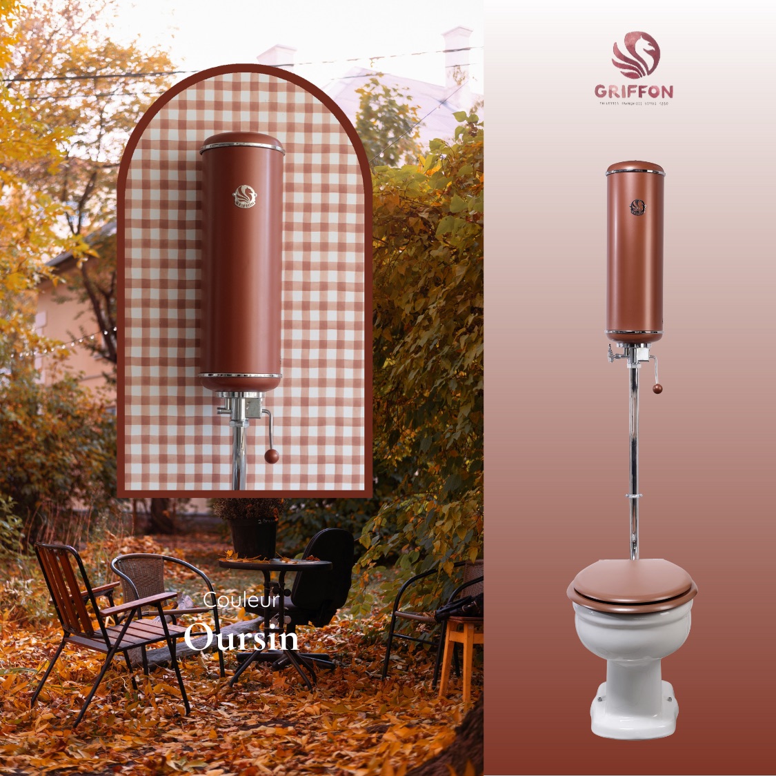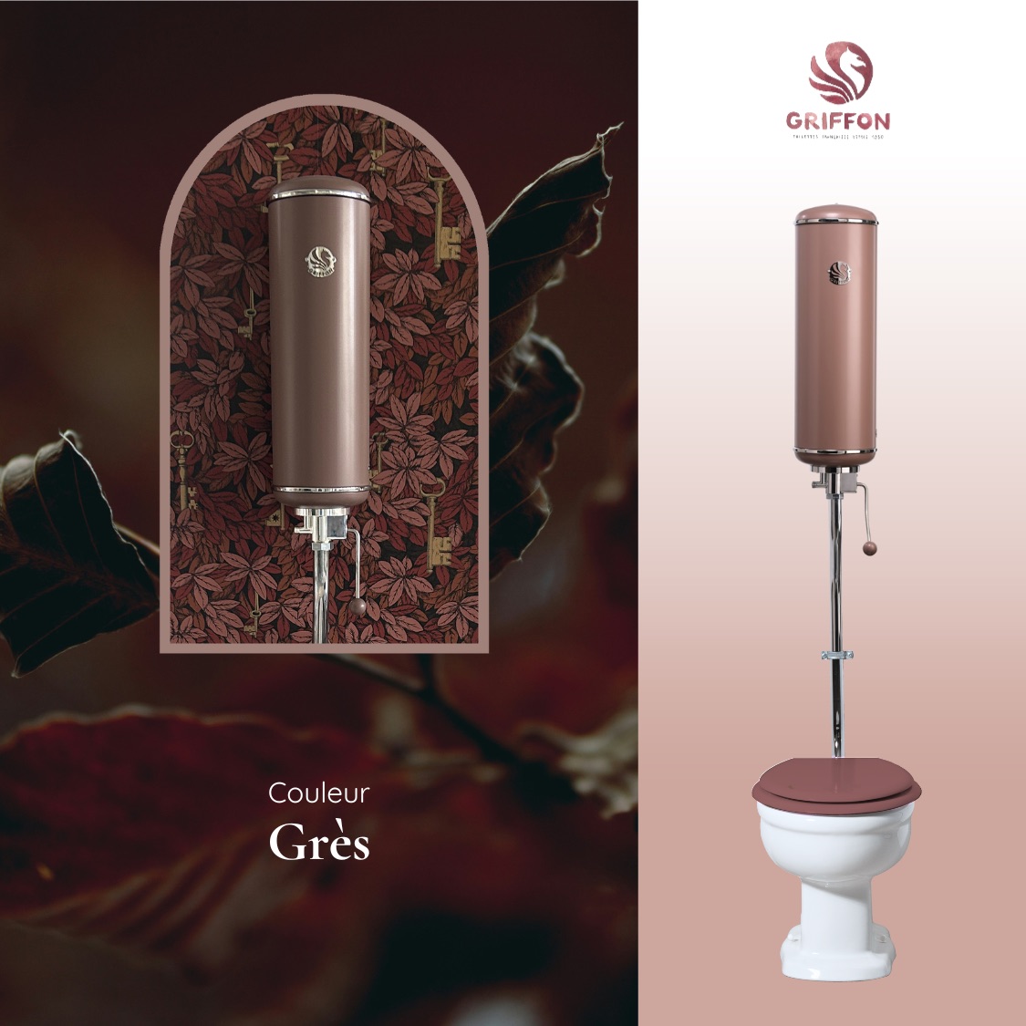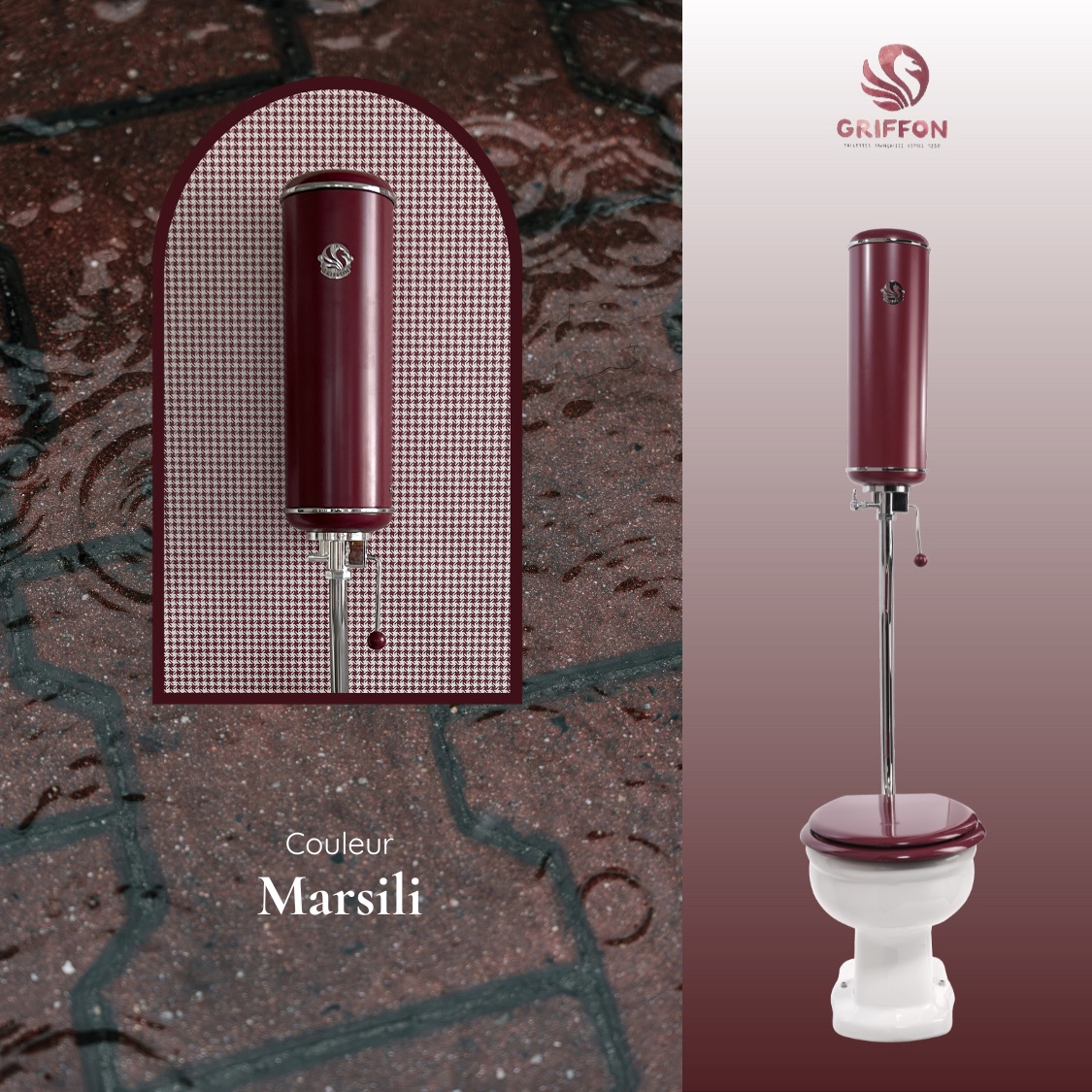 Rouge profond, infusé de grenat et de bordeaux, Marsili réchauffe les intérieurs d’un éclat mat et lumineux. Inspirée par les nuances changeantes des feuillages et des pierres chauffées par le soleil, cette couleur évoque la chaleur et la vitalité de l’automne. Elle insuffle une note profonde et élégante, parfaite pour révéler les formes iconiques des toilettes Griffon.